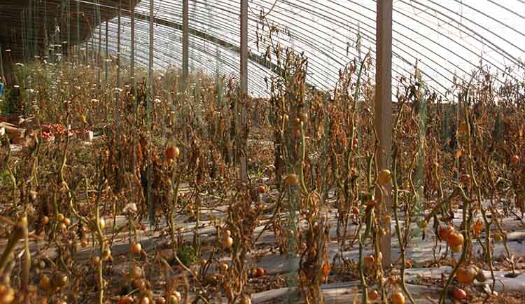 (其他普通外保溫溫室室內溫度過低導致作物的根系停止生長,作物變黃枯萎,逐漸死亡)